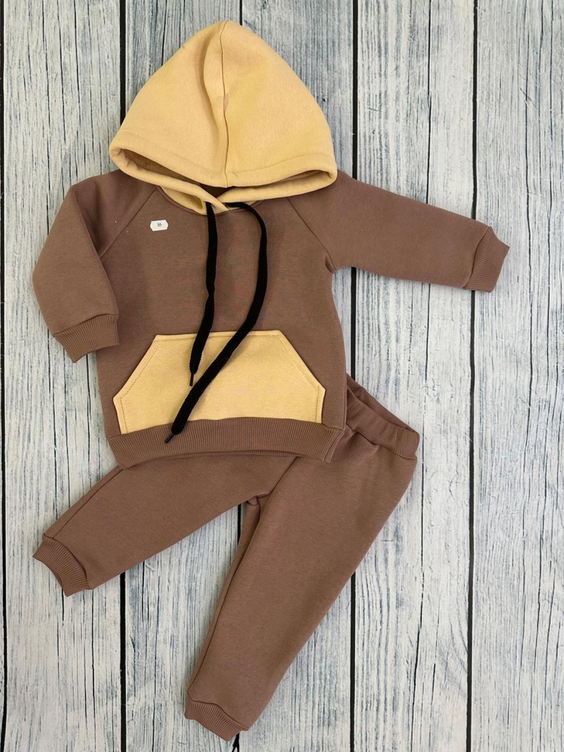 Купить оптом 296-РАЗ. Худи +Брюки детские, хлопок 65%, 35% ПЭ, 3-х нитка (начес) разноцветный 80,86,92 в Нефтекумске