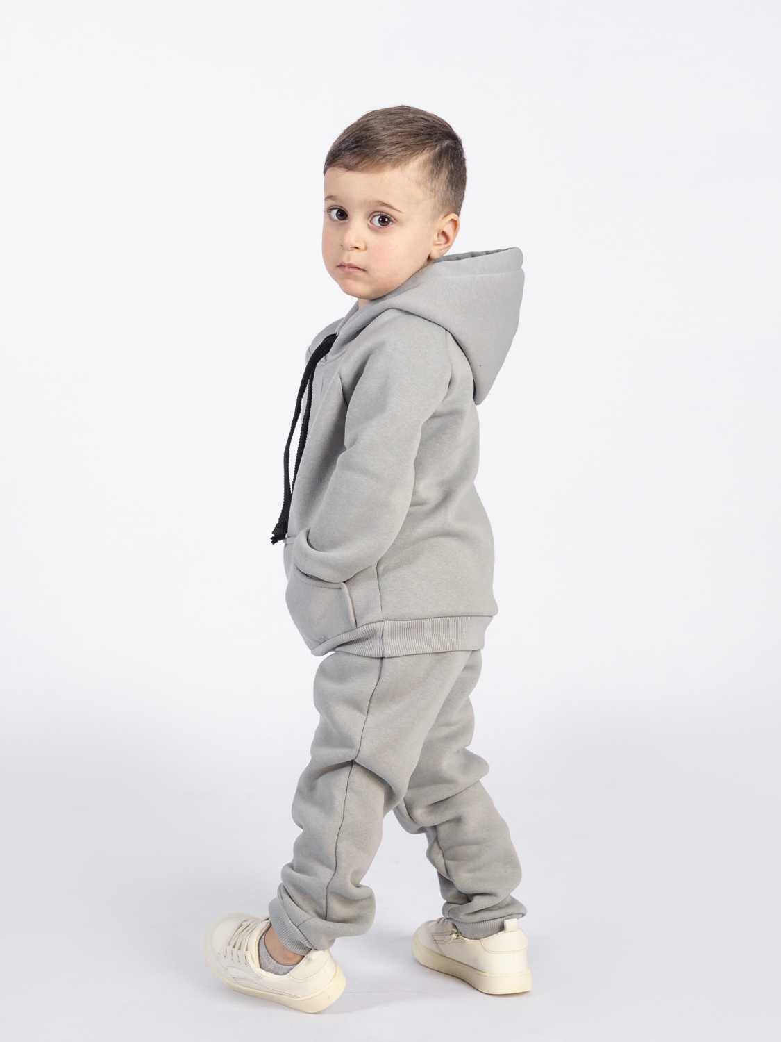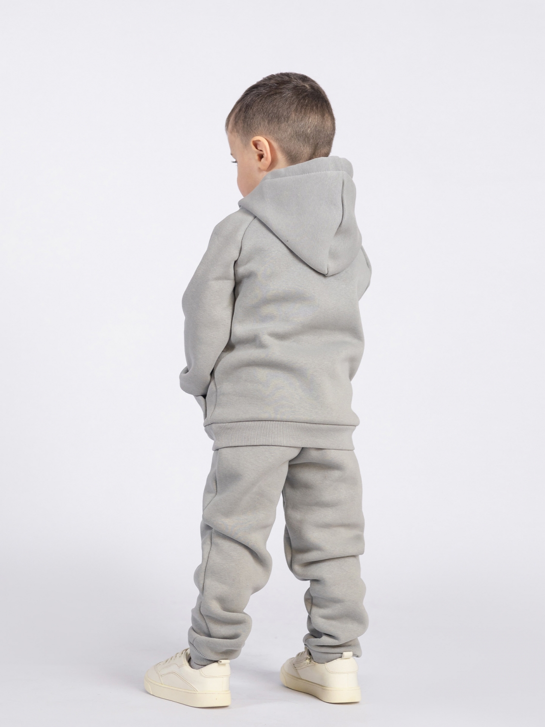 Купить оптом 296-С. Свитшот с капюшоном + Штаны, хлопок 65%, 35% ПЭ, 3-х нитка (начес) серый 122,128,134,140 в Нефтекумске
