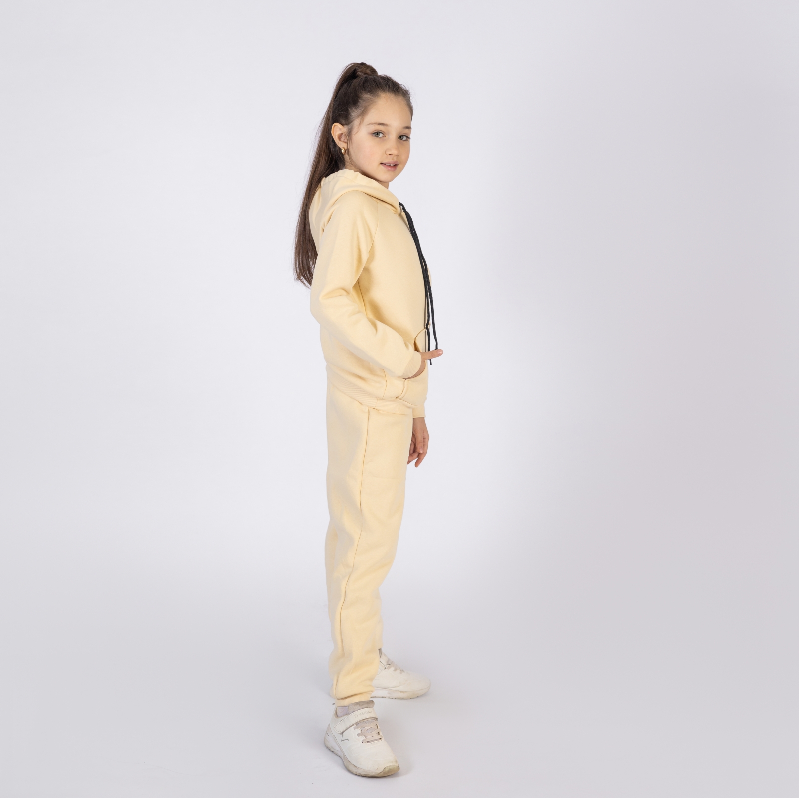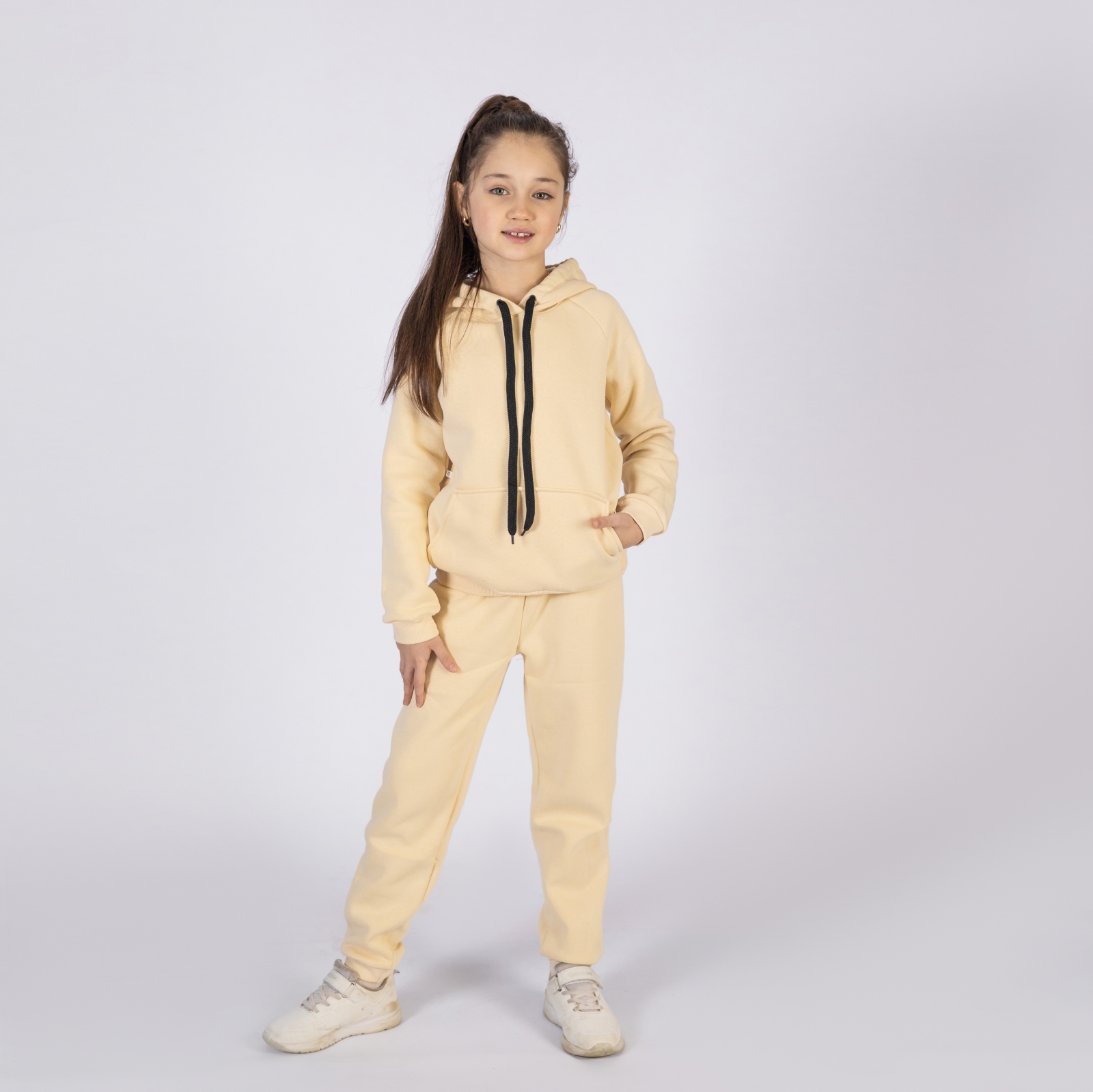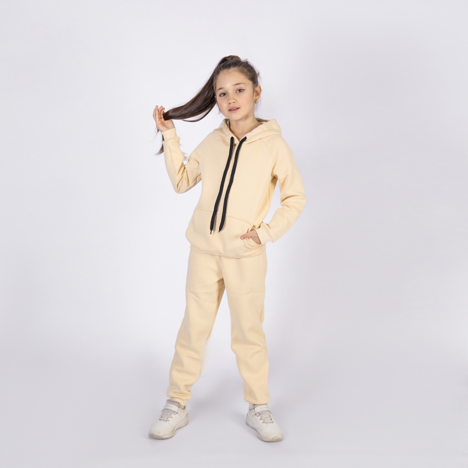 Купить оптом 296-СЛ. Свитшот с капюшоном + Штаны, хлопок 65%, 35% ПЭ, 3-х нитка (начес) сливочный 80,86,92 в Нефтекумске